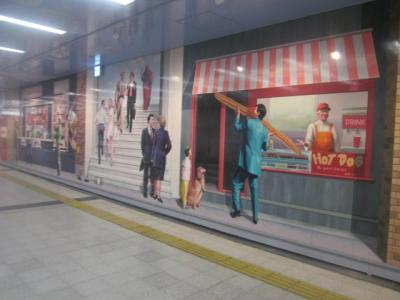 因みに私は、せっかくなので、路線名にもなっている途中の四ツ橋駅(路線名では間の”つ”はひらがなですが、駅名としてはカタカナになります)で下車して、様子を確認しに行ってみました。すると、この駅でも御堂筋線の心斎橋駅に乗り換えられるのですが、かなりの距離があるようで、途中の通路の風景を見て、心斎橋駅まで行くのを断念し、そのまま四ツ橋駅ホームに戻って西梅田駅に移動することにしました。やっぱり四ツ橋線から御堂筋線への乗り換えは大国町駅経由が便利なようです。