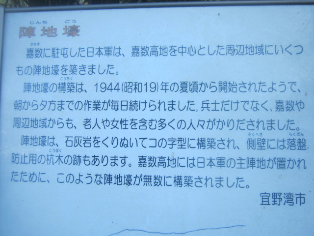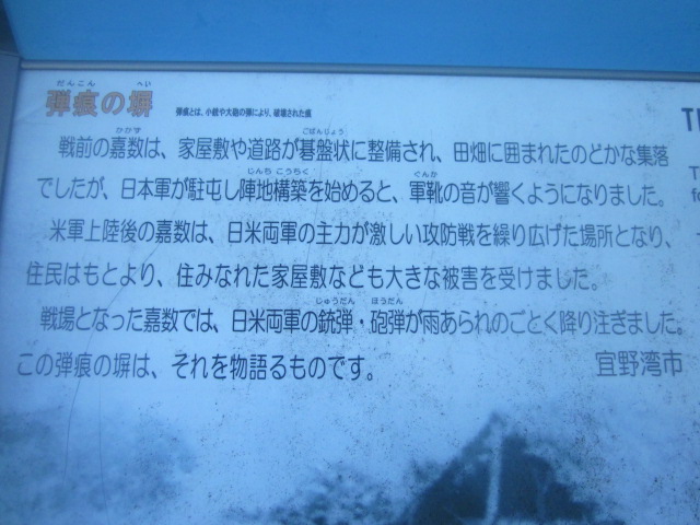 嘉数という地区自体が、太平洋戦争時の沖縄戦の激戦地としても知られていますし、現代的な意味からも、普天間基地や辺野古のことに思いを馳せるのにはとても良い場所だと思います。戦跡としても、公園内に色々と残されていますので、併せて見学されていくと良いです。