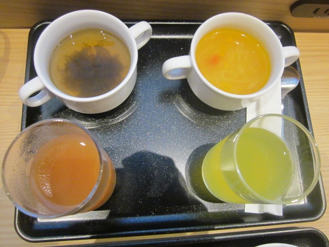 私は早朝の利用でしたが、羽田と比べるとビジネス客の利用が少ないこともあってか、同時間帯の羽田とは大違いで、ガラガラのほぼ貸切状態で、沖縄らしいもずくスープや青パパイヤスープ、シークワサージュース・グアバジュースや、ジューシーおにぎり、ジミーのパン等を堪能することが出来ました。