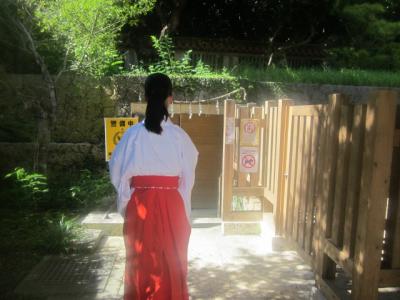 撮影禁止なのが残念ですが、とにかく凄い洞穴で一見の価値ありですので、是非ご覧になってみて下さい。尚、この巫女さんの案内まで、数分待たされるお部屋があるのですが、ここの展示も素晴らしく、夏はここはクーラーが効いていて快適です。この部屋だけの見物も出来ますので、何かの都合で洞穴をご覧になれない場合は、このお部屋も是非お見逃しなく!- 旅行時期