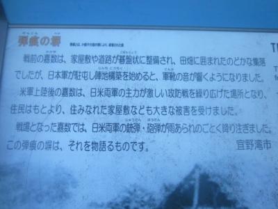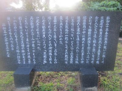 沖縄戦序盤の激戦地として知られる嘉数には、今風に言うところの”ダーク・ツーリズム”的な見応えのあるスポットが色々とありますが、ここもその一つです。嘉数高台公園には地球を模した形の展望台がありますが、その横のスペースに幾つかの慰霊塔と並んで設置されています。正直、京都に所縁を持つ自分としては、嘉数の戦闘で、京都の方々が多数亡くなられたことを知らなかったので、とても恥ずかしい気持ちになりながら、静かに合掌させて頂きました。ここのすぐ向かいには、戦後の嘉数が公園として整備されるまで、寂しげに放置されたままだったというトーチカもありますので、併せてご覧になられると良いです。