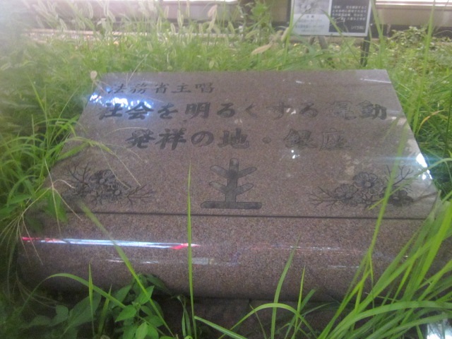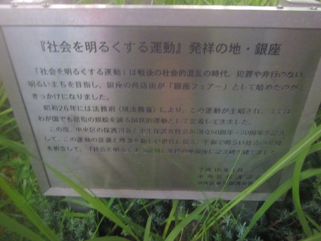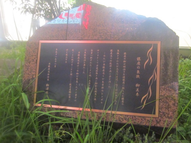 JR有楽町駅から銀座のロッテ免税店に向かう途中の歩道脇で、何やら存在感がある碑を見つけたので、興味津々で眺めてみるとこちらの碑でした。立地的には数寄屋橋公園内にありますが、公園に入らなくても、歩道脇から眺めることが出来ます。少し文字が小さくて、解説が読み辛いのが残念に感じた碑です。デザイン的にもあまり面白味がなく、もう少し柳並木をイメージしたデザインなら良かったのになと思いました。