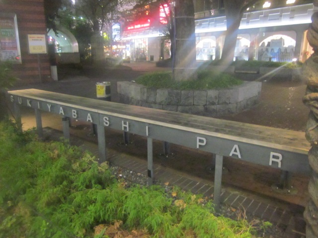 有楽町・銀座エリアの都心のど真ん中にある公園で、田舎者的には、こんなところによくも公園を造ったなと驚かされるようなニッチ的存在の都会のオアシスです。ちょっとお洒落なベンチなども用意されていて、やはりオフィス街が近いだけの公園だなという都会的なセンスを感じる一方で、謎の石碑や屋外彫刻なども色々と設置されていて、具に眺めてみると意外と趣もある公園に感じました。