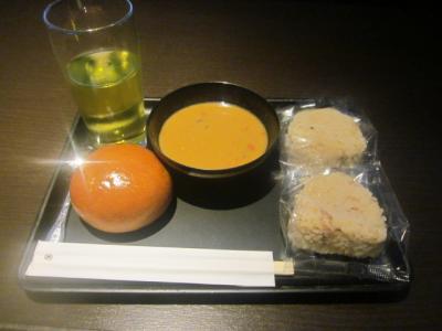 一応、サクラとは差別化を図るためか、スープ類やおにぎり、パンなどが用意されていますので、私のような貧民の方は、たまの贅沢でちょっと断食して入室に挑むと良いでしょう。ただ、勿論国際線と比較すると、食べ物のグレードはビジネスラウンジレベル以下なので、それ程期待しない方が良いですが、羽田では、11時半から国際線仕様のカレーパンが提供されています(2018年8月現在)ので、これを目当てに立ち寄られるのも良いでしょう。