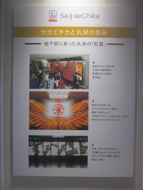 このサカエチカの名所としての見所は、何といっても、かつては丸栄の広告塔的な”虹壁”がクリスタル広場と共に、名古屋人の栄における定番の待ち合わせスポットとなっていた箇所です。現在は、1999年に設置された丸栄のロゴも描かれた安河内敦子氏の作品:光り壁「木漏れ日」が設置されていて、このステンドグラス風の作品も美しくて、今は忘れられたようにひっそりと地下街の奥に佇んでいるように見えますが、その歴史的意義は重要ですので、是非、色々なことを考えながら(丸栄閉店後に訪れた方は、丸栄の思い出なども回想しながら…)訪問されると、とても情趣深い旅になるかと思います。- 旅行時期