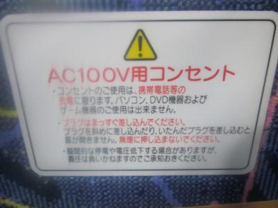 今回は札幌→旭川間で、高速あさひかわ号を利用しましたが、コンセントが装備されているタイプのバスでした。喜んでPCを使おうとコンセントに差し込もうとしたところ、不意にシートポケット傍の掲示を目にして吃驚、何と、PC使用は不可、となっていました。