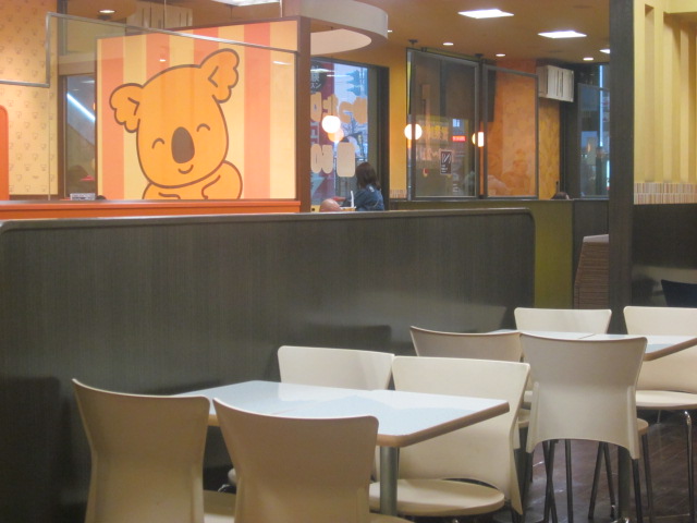 旭川駅傍にあるバーガー系のファストフード店としては、イオンのフードコートを除くと、買物公園通り沿いのこの店舗が、一番便利な立地かなと思います。マクドがなくなって以来、ここかモスかの選択となりますが、ここのロッテリア店舗は、私が訪れる際はいつも空いていて、イオン開業前と比較しても、明らかに客が減少している印象を受けるのですが、まだ閉店せずに頑張っているところを見ると、それなりに需要はあるのかなと思います。私見では、意外とビジネス利用のお客さんが最近では多く感じますし、特に夜間は可愛らしいコアラに囲まれた店内で、おっさん達がPC作業に勤しむ、というシュールな風景を楽しむ(?)こともできます。恐らく、若者達の多くがイオンに行くようになり、客層の平均年齢が上昇、そして、客単価も上がっているのが、空いていてもお店が維持できている一因なのかな、と勘繰っています。