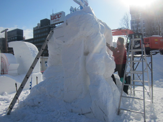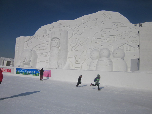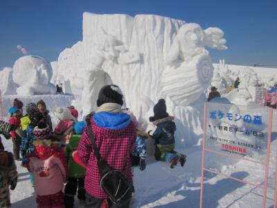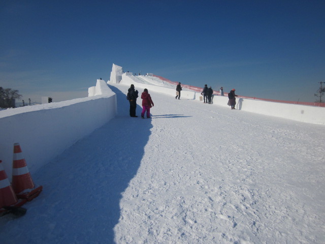 厳冬期の北海道第二の都市旭川で開催される、冬の一大イベントで、最大の見所は、さっぽろ雪まつりの大雪像の規模をも凌ぐ、巨大な雪像で、毎年ここへは上部に登れるようにスロープが造られます(そのスロープと並行して、巨大滑り台も…)。