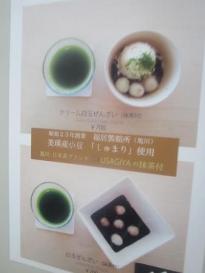 今回は父の搭乗前のランチ会食で、こちらのお店を利用しました。父は普通にサンドイッチをオーダーしましたが、私はお腹が一杯だったので、デザートメニューとして紹介されていた白玉ぜんざいというのを頂きましたが、洋食メインと感じられる店内の雰囲気とは裏腹に、こちらの和スイーツは、美瑛産の小豆「しゅまり」を使用して、旭川の福居製餡所で製造された餡子や、飲み物として旭川の日本茶ブランド「USAGIYA」の抹茶が付いてきますので、これらが案外本格的な味で美味しかったです。