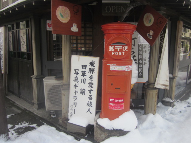 飛騨古川市街地、町のランドマークとなっている瀬戸川の一本西側に並行して続く壱之町通り沿いにあるお店で、お蕎麦などを頂くことができますが、ここは田草川譲氏のギャラリーが併設されていますので、ちょっとした美術館感覚で訪れるのも面白いお店です。また、すぐ隣には、まちなか観光案内所が設置されていて、町の情報収集や古川祭の映像展示を楽しめたりしますので、併せて立ち寄られると良い施設だと思います。