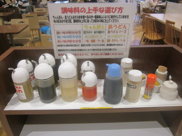 リンガーハット店舗としては、北海道内の他店舗と同様、フードコート店舗ですので、ちょっと落ち着かない雰囲気もあり、特製たれやラー油、柚子胡椒等が一か所にまとめて設置されているので、取り忘れて再度取りに行くのが結構面倒臭かったりします。