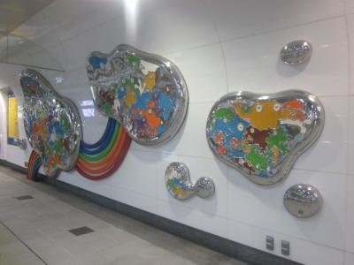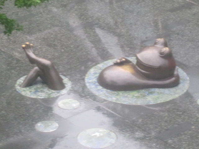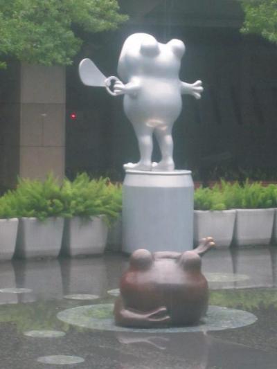 個人的には台北のイチ押しスポットといっても過言ではないのが、こちらの駅に隣接して設置されているカエルさん達のモニュメント(?)です。私は雨降りの一日に訪問しましたが、丁度このモニュメント全体が池をデザインしている感じで、雨が降っていた方がそのイメージがしっくり来て、とても良かったです。また、駅構内には半円形のドームで覆われたような休憩箇所があって、ここでもカエルさんが色々と見られますので、私のようなカエルマニアの方には是非ご訪問をお勧めしたい、とても可愛らしいスポットです。立地的にも、台北駅と台北101の最寄り駅の狭間にあるオアシスのような風情で、一度行ったら、病みつきになってしまう駅だと個人的には思ってしまいます。