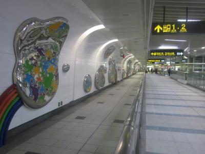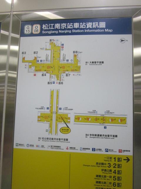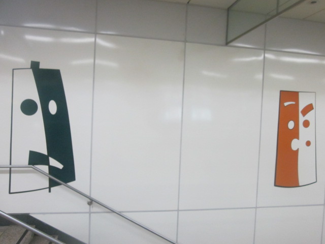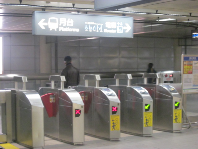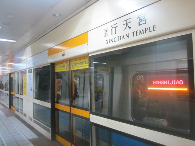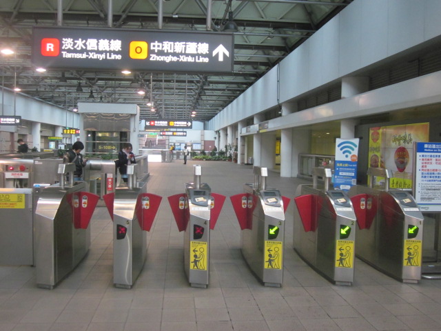 オレンジライン上の駅ですが、隣の中山国小駅と同様、他路線との接続がなく、割とすっきりとしたレイアウトで判りやすい印象の駅でした。この駅の構内では、まさに行天宮駅であることを物語る、建築や仮面のデザインを楽しめますので、行天宮に行かれる際には、合わせて見物されておくと、実物と対比できてより印象に残ると思います。