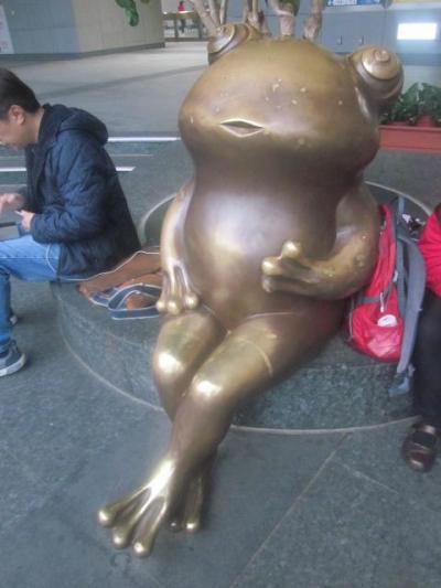 しかし、この駅の界隈は自然に恵まれたところで、その象徴としての50m余りに及ぶ壮大なカエルさんをモチーフにしたアート作品が展示されていて、これを見るだけでも相当な価値がある駅です。