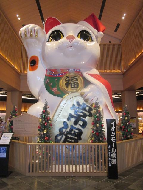 セントレアを利用する際、時間がある限りは必ずと言っていいほど個人的にはよく立ち寄っている空港至近のイオンモールです。ここの顔は何といっても、猫の町常滑を象徴する巨大招き猫ですが、今回はクリスマス直前の訪問ということもあり、”サンタバージョン”(?)の招き猫ちゃんに出会うことが出来ました。また今回は、いつもとは違う出入口から入店しましたが、ここの入口にはコンプレッサー方式の自転車の空気入れも設置されていて、無料で利用できるようになっていました。市街地方面から自転車で来店される方も多いようで、自転車マニアとしてはちょっと嬉しくなる光景でした。