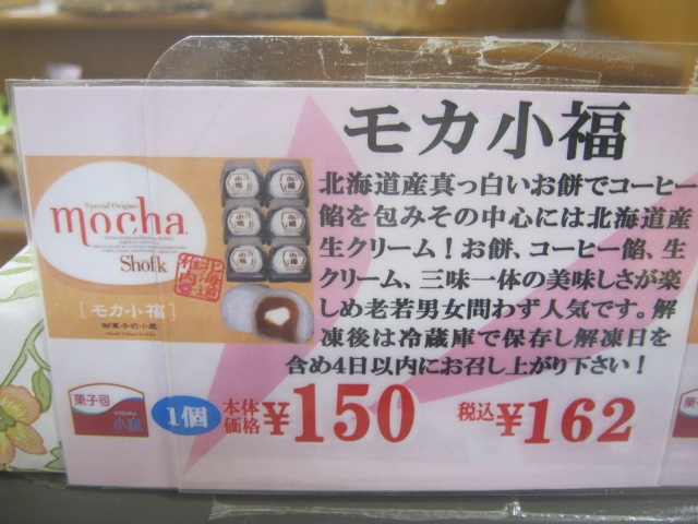 元々ここは、流氷まんじゅう、という有名な銘菓があるのですが、現在では、看板商品としてはモカ小福を推している感じですね。