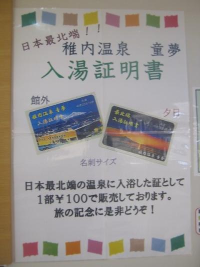 ここは何よりも、日本最北端の温泉として、入湯証明書が販売されているのがユニークですね。しかも自販機で買えるようになっているのも面白いです。