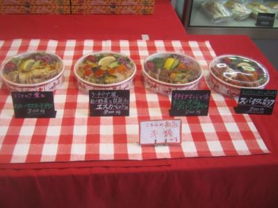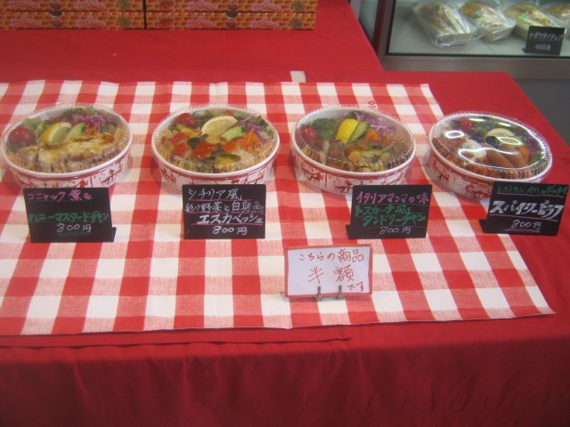 私はJR利用で14時頃訪問しましたが、ランチ用に作られたと思しきメニューが数点、半額で売られていて、通常800円の品を400円で購入することが出来ました。
