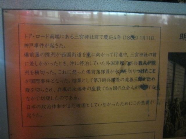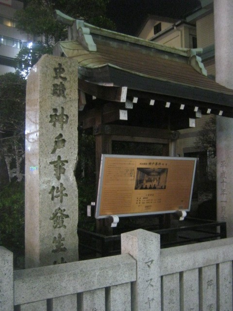 私は地下鉄利用で、旧居留地・大丸前駅の3番出口からアクセスしましたが、三宮神社の境内脇を180度正反対に向かった場所にこちらの記念碑がありました。