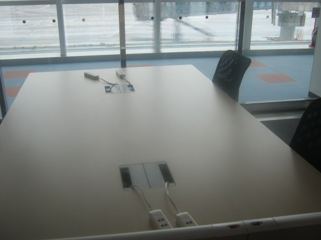 特にCTS便をご利用の方には、早めにチェックインして、航空機がよく見える側にあるビジネスコーナーの長テーブルで、テレワークでのお仕事は如何でしょうか。