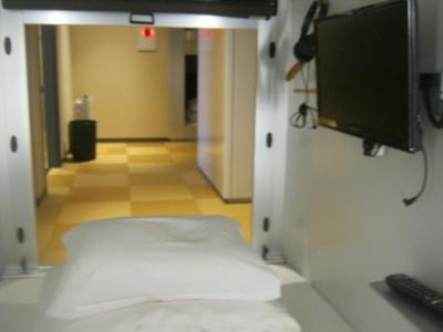 カプセル、というか仕切られたキャビンスペースの内部にはテレビはありませんし、空調がイマイチ効いていなかったこともあって、最初は暑くて寝られませんでした。