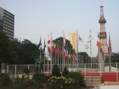 駅前通りと交わる西4丁目エリアがゴール(スタート)地点でしたが、コース沿いのフェンス等の撤去は既に完了している風情で、各国旗が並ぶポールなどはまだそのまま残されていたので、名残惜し気に記念撮影されている方の様子を多く見かけました。