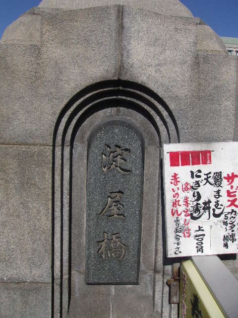 京阪本線の大阪側の終点としても知られる淀屋橋ですが、橋自体に注目してみると、歩行者の動向には東西で結構差があるように感じます。時間帯にも依るのかもしれませんが、私が通過したお昼過ぎは、異常に東側歩道の通行量が多くて、西側は閑散としている雰囲気が確認できました。それ故、東側には怪しげな店や呼び込みの人なども多くいて、ちょっと落ち着かない雰囲気です。淀屋橋からの景観をゆっくりと楽しみたい方は、西側の歩道を歩かれる方が良いかと思います。