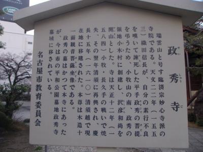 お寺自体の解説に関しては、解説板に譲りたいと思いますが、観光客的側面から見た場合、このお寺は名鉄バスセンター3Fの4番乗り場から出ているバスの殆どが通過する矢場町バス停のすぐ目の前にあって、立地的には名鉄バス利用が非常に便利です。そのまま矢場町を経て栄の方に歩いても、また南側の大須エリアに向かうのにも便利な立地ですので、実は名古屋駅方面からは乗り換えが必要な地下鉄よりも、バス利用が便利だと思います。しかも、このバスは本数が多いので、比較的空いていることが多いです(夕方は混雑しますが…。)。