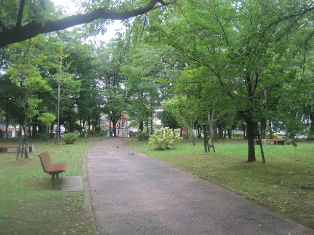 今回は、武蔵辻の宿に投宿していたので、近くの玉川図書館を観に行ったついでに訪問しました。丁度、台風一過の朝ということもあって、折れた枝や飛ばされた物品などを片付けている方の忙しそうな姿を多く見かけましたが、普段ですと、付近は割と都会テイストなエリアですので、オアシス的な癒しの場としての休憩に良い公園だと思います。
