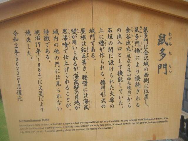 私は尾山神社の側からアクセスしましたが、この時に跨道橋として道路を渡るのが鼠多門橋で、そのままこの門に直結していますので、金沢に新しくできた中央観光案内所から、尾山神社を経て金沢城公園へ、という場合には一番便利なルートだと思います。