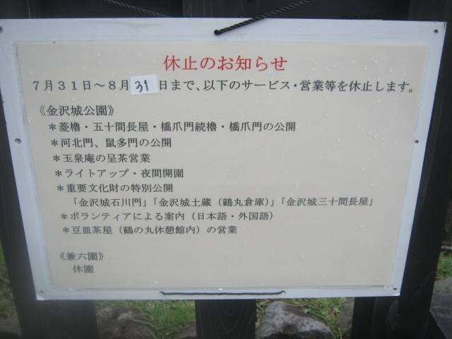 今回は、時間があまりなかったのですが、どうしても見たかった金沢城公園の一部、主に北西側エリアを中心に散策してみました。