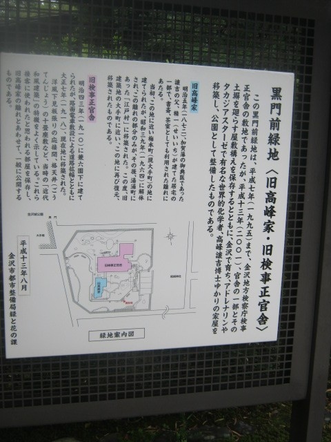 金沢城公園を西側の鼠多門から入り、北側の黒門口から出て、文字通りすぐの所にあったのが、こちらの緑地でした。副題の通りの二つの建造物が緑地内に存在していますが、残念ながら、私の訪問時はコロナ禍のために、何れも内部見学は不可となっていました。