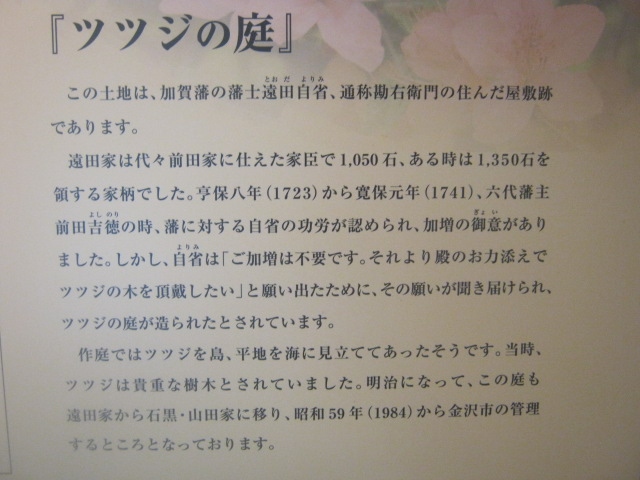 東側には金沢らしい用水路も通じていたり、元々は「加賀八家」の一家として知られる「長家」の屋敷跡だったことを示す解説板も設置されていて、金沢らしい歴史の一端も感じられるステキな公園です。- 旅行時期