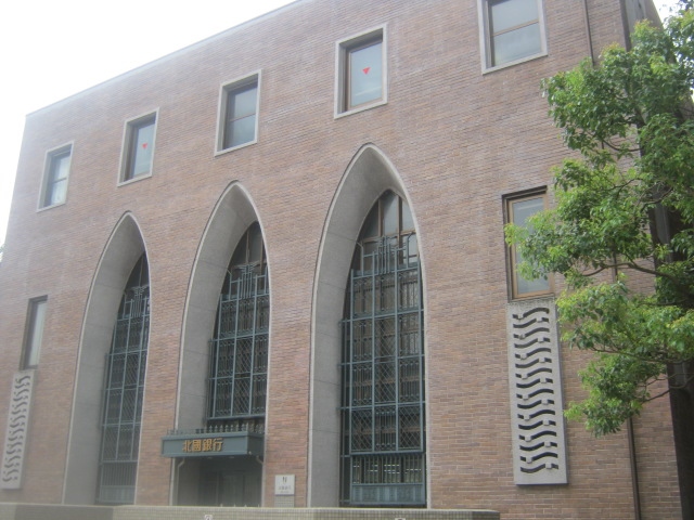 金沢の交通の要衝、武蔵ヶ辻のど真ん中に威風堂々とした姿で建っているのがこちらで、金沢らしい歴史的建造物の一つなのですが、現役の銀行として頑張っている姿にも驚かされました。ここの問題はやはり交通量で、建物が大きいために歩道から撮影しようとしても、全貌を撮るのが難しく、対岸から撮ろうにも交通量が激し過ぎて、信号の変わるタイミングとかを狙わないと、なかなか大変だと思います。是非、早朝などの交通量が少ない時間帯での撮影をお勧め致します。