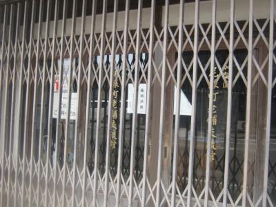 今回は見学を楽しみにしていたスポットの一つでしたが、残念ながら、ご多分に漏れずにここもコロナ禍休業中でした。ここは、国道159号線沿いの交通量が激しい道沿いに立地していて、この建物も横長で迫力があるので、歩道側からだと十分に外観を撮れないので、道路の対岸から撮ることになるのですが、道路を渡るタイミングも撮影のタイミングも難しいので、外観を楽しむだけなら、出来れば早朝の訪問をお勧め致します。