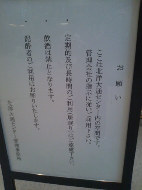 北海道民(厳密には内地の一部エリアにも店舗がありますが…)のコンビニとしてお馴染みのセイコーマート店舗の中でも、ここのように地下にある店舗は珍しいかと思います。外側にはイートイン(インはないか(^^;))用のテーブルやいすも用意されていますが、実はここは上部の北洋銀行大通センターの管轄となるようで、伏せて寝たりしていると警備員から声が掛けられたりすることもありますのでご注意下さい。