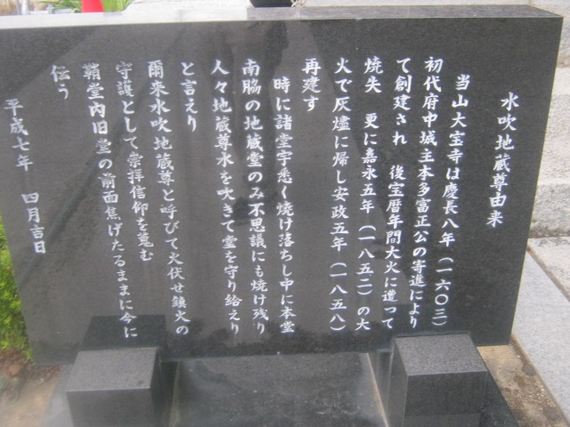 ただ、水吹地蔵尊という、火事で焼け残って以来、鎮火の信仰をあつめるようになったというお地蔵様もいらっしゃいますので、ご覧になられると良いですね。