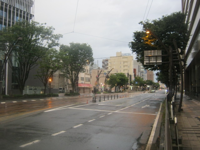 福井市街地のど真ん中を南北に通ずる大通りで、この区間では路面電車となる福井鉄道が並行して走っていますので、鉄道好きな方は撮影スポットとしてもお勧めできる通りです。交通量が多いので、昼間の時間帯はなかなか走行する車が邪魔して、鉄道車両が撮り辛いことも多いので、早朝時間帯や信号のある交差点で待ち構えるのが良いでしょう。