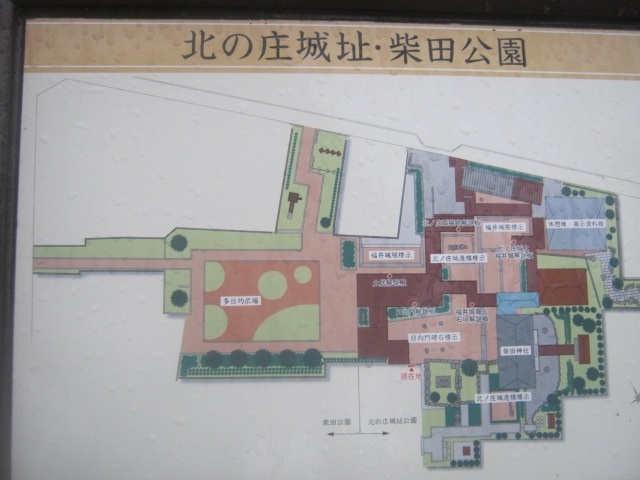 JR福井駅の南西側にある公園で、普通の都市公園として捉えるよりも、城址公園として訪問されると良いところです。敷地内には柴田神社や北の庄城址資料館、柴田勝家像などがあって、それぞれが整備された歩道で繋がっていますので、一巡されると良いかと思います。