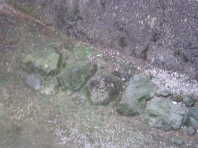 私は雨の日にこの像を石垣の上から撮ろうと、石垣の一番角に移動したのですが、ちょっとスリッピーな感じで、危うく石垣から転落しそうになりました。高さは2m程なので、落ちても大けがにはならないかと思いますが、くれぐれも足元にはご注意下さい。- 旅行時期