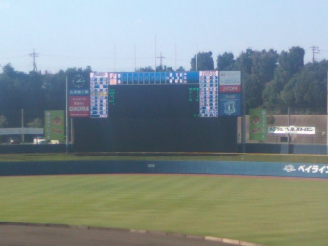 野球好きの北海道民として、関東に足を運んだ際にはいつか是非訪れたいと思っていたのがこちらの球場です。今回は2014年パリーグクライマックスシリーズのパブリックビューイング開催で足を運んでみましたが、昔ながらの野球の風情を満喫できそうな球場で、今度は是非試合の開催時に足を運びたいなと思わせてくれる、素晴らしい球場でした。尚、私は往路は西船橋駅からの直行バスを利用しましたが、このバス車内もファイターズ色に染まっていて、各選手(主にファームの選手)の紹介が貼られていたり、面白いのは、バスのアナウンスの声が各選手のものとなっているので、ファンの方にはたまらない乗り物だと思います。