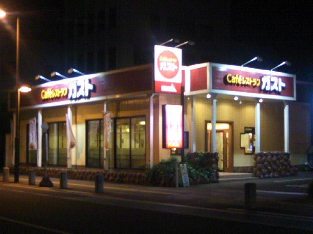 深夜に宇都宮に到着して、県庁所在地の大都市だから何かしらの深夜営業のお店が駅前にはあるだろうと高を括っていたのですが、意外と宇都宮という町は深夜営業のお店が少なくて苦労しました。駅前のマックはテイクアウトのみだし、ネットカフェも見当たらないしで、途方にくれながらその辺を歩いていて偶然見つけたのがこちらのガストで、ここは24時間営業ですので、客席でゆっくりと時間を過ごすことが出来ました。宇都宮駅からは徒歩で10〜15分程度の距離ですが、この町では利用価値の高い店舗だと思いました。