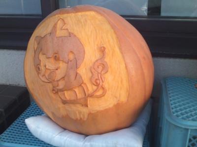 私の住む町のお祭りですので、どうしても贔屓目になってしまうのですが、最近では道内向けのラジオCMまで放送されるほど知名度が高まってきているお祭りです。南瓜関連のイベントとして、意外と観光客に知られていないのが、この時期、町内のお店の軒先などに並ぶパンプキンランタンの様子です。皆さんデザインに凝っていて、コンテストにもなっていますので、年々レベルも高くなっているように感じます。火が入る時間帯などはまさにハロウィンの雰囲気ですので、お祭りにいらした際には是非町内のパンプキンランタンの並ぶ光景にも注目してみて下さい。
