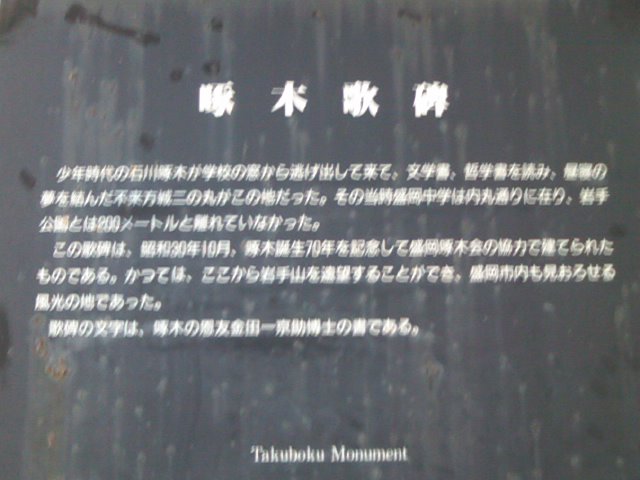 ”不来方のお城”として有名な盛岡城のある公園ですが、残念ながら天守閣は現存しておらず、本丸部分には銅像の台座部分のみが残る(銅像部分は戦時中に供与されてしまったとのこと)、という、ある意味”城跡”らしいお城の公園ですが、石垣などはとても見応えがあり、やはり盛岡に来た以上は絶対に立ち寄っておきたいスポットだと思います。人それぞれ趣向が異なるかと思いますので、どこが一押しか等とは簡単に申し上げられませんが、どんな方でも満足できると思われる、総合点の高い城跡公園です。