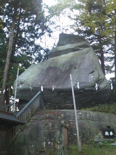 岩手県の名前の由来となっているのは、北山寺院群の一角にある三ツ石神社の巨岩ですが、流石、”岩の県”だなあと思わせてくれるのがこちらの烏帽子岩です。桜山神社の境内にありますが、存在感はたっぷりで、よくもまあ、この状態で留まっているなあとちょっと恐怖を感じてしまう程の威圧感があります。桜山神社の本殿向かって右手に赤い手摺が設けられた石段が続きますので、こちらを登ってその凄い岩の様子を間近で体感してみて下さい。