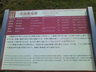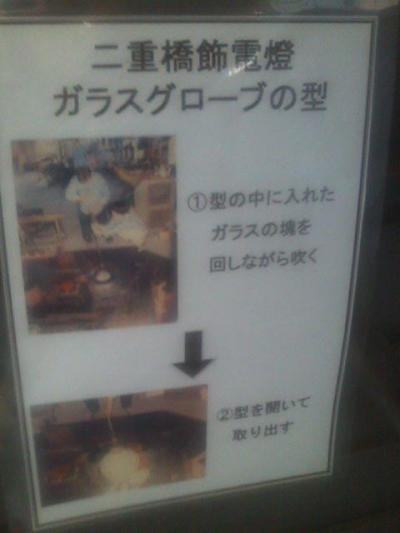皇居内にあった二重橋袂の電燈が明治村内にさりげなく移築されていますが、電燈そのものは勿論、ここではすぐ隣にある新橋工場内の入口付近に、電燈に使用されていたガラスグローブの型も展示されています。写真付きの解説もあって、どのように電球が製造されていた(いる?)のかがよく理解できますので、こちらも是非お見逃しなく…。
