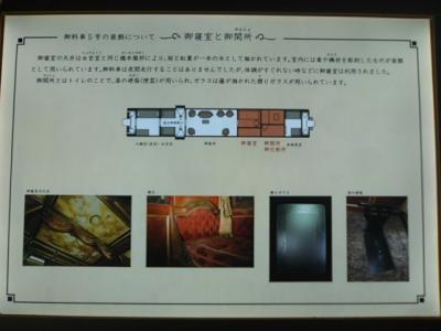 こちらの建物は、工場という名前ではありますが、実際は車両基地のような建物となっていて、内部には貴重な御料車が二連大切に並べて展示されています。残念ながら車両内には入れないようになっていましたが、車内装飾の詳細などに関しては、車両脇に解説板が並べてありますので、これを参照しながら、車外から覗き込む様に車内見学すると良いかと思います。