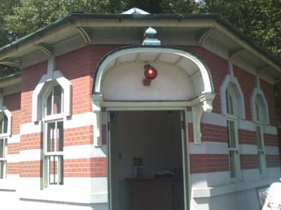 こちらは明治村内でも交通の要衝といえる、二丁目と三丁目とを繋ぐエリア、京都市電の京都七条駅のすぐ傍にありますが、元々の施設用途と同様、”巡査”さんがいらして、観光客に道案内などをしていました。それ以外の質問などにも気さくに答えてくれますので、町の巡査さんとは違った、緊張感のないフランクな触れ合いを楽しめる場所としてお勧めしたいです。