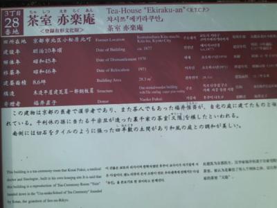 明治村の3丁目エリア、西園寺公望の別邸に寄り添うように建てられている小さな茶室です。ただここは、普段は公開していないようで、明治村内ではよくある、ガイドツアーでの案内などの掲示も見られず、ちょっと残念な気持ちになりました。周囲の雰囲気はとても良い場所だけに、もう少し自由に立ち入ることが出来ればなあと思ってしまいました。