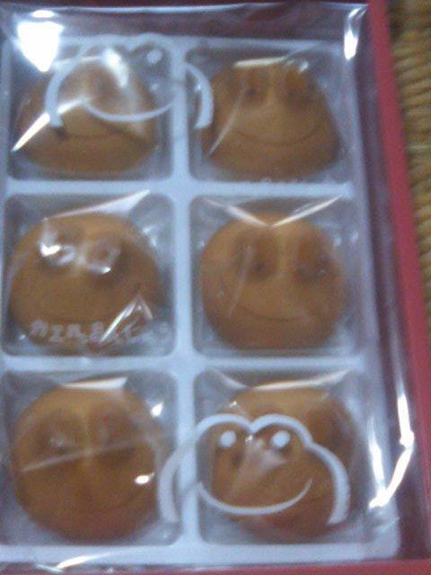 ケロケロマニア的には絶対紹介しなければならないのがこちらのお店ですが、前回ご紹介致しました通常のカエルまんじゅうの並びに、今回赤いパッケージの商品を発見!何と季節限定(秋冬とのことで9月~2月の販売予定とのことでした)のおいも餡が入ったかえるまんじゅうとのことで、マツダスタジアム傍で「赤いローソン」を発見した時と同じような衝撃を受けました(大げさか…)。勿論即買いしましたが、スイートポテトのかえるまんじゅう版という感じで、味もとても美味しかったです。勿論、通常のカエルまんじゅうと同様、外箱のふたでカエルさんのお面も作れます(6個入り以上のサイズ)。お値段は通常のカエルまんじゅうより少し高めで、6個入り648円でした。
